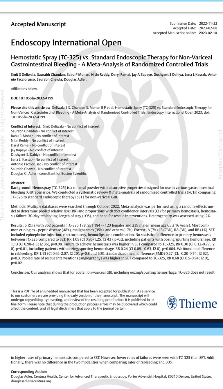 It was a RCT reporting on the use of Hemospray in upper GI bleed, comparing it with standard endoscopy therapy.