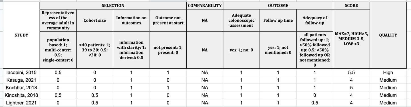 Newcastle-Ottawa scale for cohort studies, Jadad scale for RCTs, QUADAS2 for diagnostic accuracy studies and QUIPS scale for prognostic factor assessment studies are some of the examples.